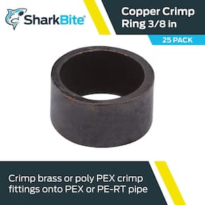 - SHARKBITE Anel de crimpagem de cobre: este anel de crimpagem SharkBite crimpa acessórios de latão ou poli PEX em tubos PEX ou PE-RT; disponível em tamanhos de 3/8" a 2"