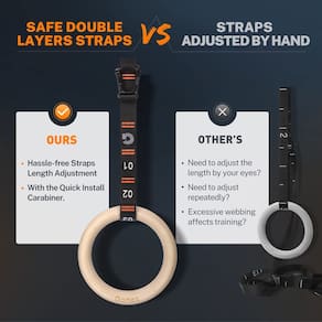Os anéis de ginástica são a ferramenta de fortalecimento mais eficaz para treinar seus peitorais, abdominais e psoas. Os anéis de ginástica Gonex têm tiras de camada dupla para garantir supersegurança - Mosquetão de instalação rápida: o mosquetão rápido Gonex foi projetado para uso rápido e fácil, permitindo que você altere o comprimento da alça resistente em 2 segundos. Não é necessário montar a alça sozinho. Não precisa se preocupar com passos tediosos - Alças de camada dupla seguras com impressão digital: As tiras duplas de poliéster de alta resistência de 3,8 cm x 21 m são impressas com algarismos arábicos para ajuste de comprimento da alça sem complicações. Não é necessário ajustar o comprimento pelos olhos. Não é necessário ajustar repetidamente - Anel de ginástica de madeira: os anéis de ginástica Gonex são feitos de anéis de madeira de 3,2 cm de espessura, mais duráveis e seguros do que anéis de plástico ABS ou PC, não parecerão fáceis de quebrar - Fácil instalação: como mostrado nas instruções, é muito fácil instalar os anéis. Para fixá-lo mais estável, rasgue o adesivo preto e envolva o lado final com ele novamente. Lembramos fortemente que você trave o mosquetão adequadamente antes de treinar - Adequado para família, academia, pátio ao ar livre: os anéis de ginástica são a ferramenta de fortalecimento mais eficaz para treinar seus peitorais, abdominais, psoas. Os anéis de ginástica Gonex podem ser instalados em residências, academias e pátios externos onde podem ser pendurados