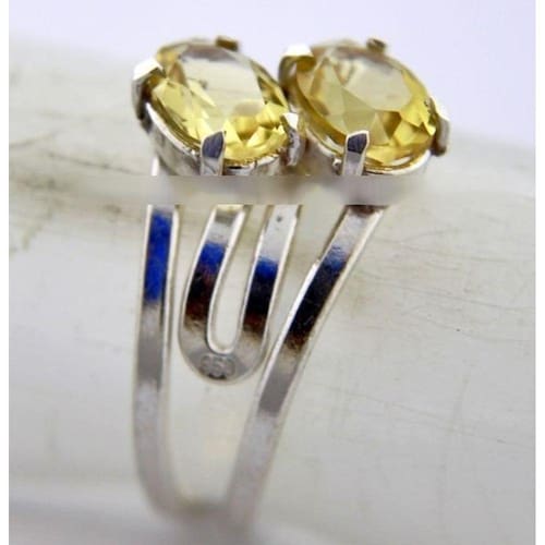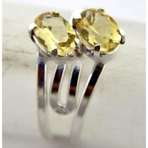 Anel PRATA 2 Pedras Citrino Gemas Facetado Pedras Naturais, com lapidação manual aro ajustavel ao dedo serve do 10 ao 30 Prata de lei