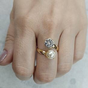 Anel Semijoia com Banho de Ouro 18k, com Pérola e Zircônia, ajustável. Um clássico e exuberante modelo que vai surpreender a mulher amada.