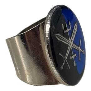 Anel Ajustável Ogum Xoroquê 2,70 cm Niquelado em Metal Anel Ajustável Ogum Xoroquê 2,70 cm Niquelado em Metal