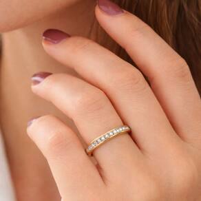 Ideal para compor alianças de casamento, noivado ou para quem busca um anel delicado com brilho discreto e sofisticado.