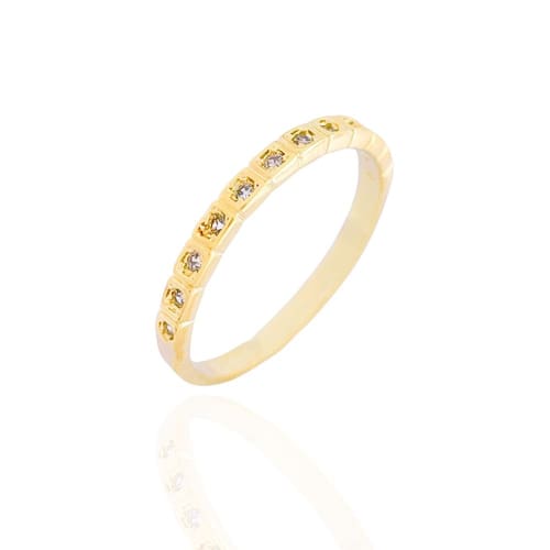 Anel Aparador Quadradinhos Cristais Banhado a Ouro