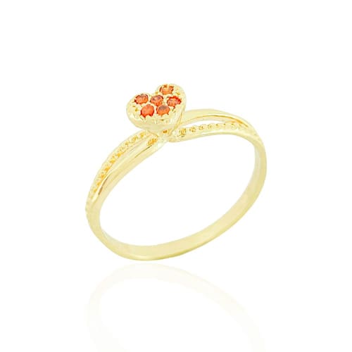 Anel Aro Vazado e Coração Zircônias Laranja Banhado a Ouro