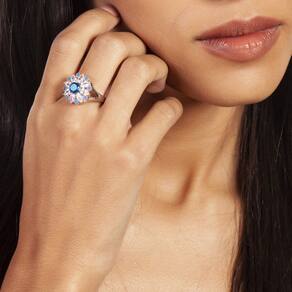 - azul claro Forma da pedra central: redonda EUA Tamanho do anel: