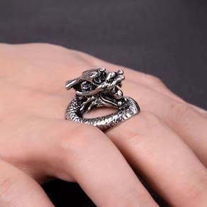 Características: Design em forma de dragão Acabamento fino Ajustável Material: liga de metal premium Não mancha e não altera a cor Gênero: unissex Estilo: punk, vintage, rock, wild crazy, gomaya, knight, kpop, bts Cor: prateado Tamanho: ajustável