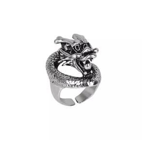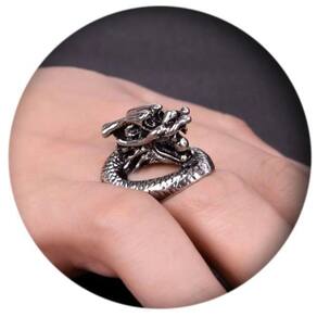 Características: Design em forma de dragão Acabamento fino Ajustável Material: liga de metal premium Não mancha e não altera a cor Gênero: unissex Estilo: punk, vintage, rock, wild crazy, gomaya, knight, kpop, bts Cor: prateado Tamanho: ajustável