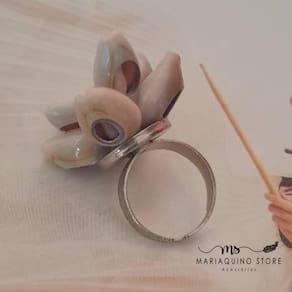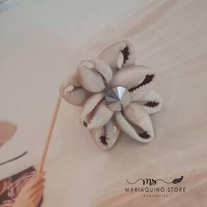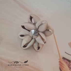 Um sonho de anel...desenvolvido em búzios naturais albino com um lindo rivoli central. Sua aparência remete a uma peça cheia de modernidade e beleza encantadora.