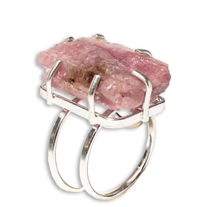 Anel Canudo Turmalina Rosa Bruto Natural Ajustável Prata 950, Anel com Pedra Bruta natural de Garimpo com montagem na garra e aro ajustavel ao dedo reforçado na Prata 950, Lindo brilho serve do 12 ao 30.