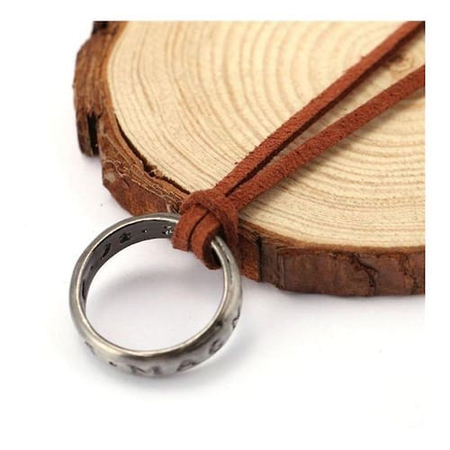 Colar em veludo marrom e anel em cobre com revestimento prateado com efeito envelhecidoInscrições do anel: sic parvis magna por fora e 29-januarie-1596 9.12.79 por dentroModelo do jogo ps4 nathan drake unchartedAcompanha saquinho lamê para guardar a peça ou para presentear.Incluso: 01 colar com anel01 saquinho de lamê.Qualquer dúvida envie-nos uma mensagem, teremos muito prazer em atendê-lo a .
