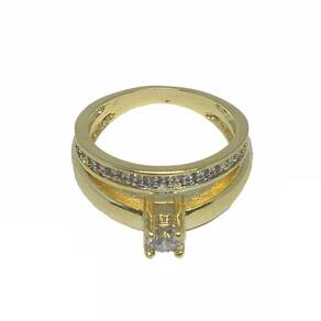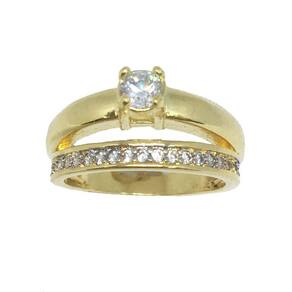 Anel Conjunto Solitário com Aparador de Zircônias  Banhados a Ouro 18k com Detalhes em Ródio.