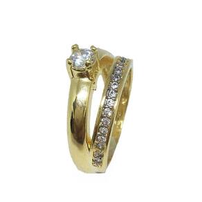 Anel Conjunto Solitário e Aparador Semijoia Banho De Ouro 18k Cravação De Zircônia Detalhe Em Ródio - Aro: 20