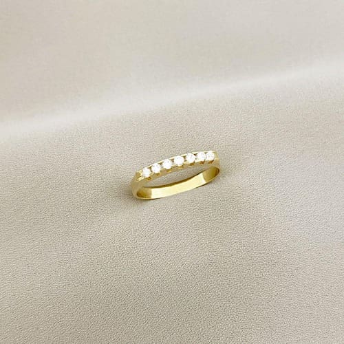Anél Cravejado com 7 Pedras Zircônia Banhado a Ouro