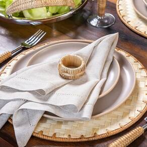Anel De Guardanapo Copa E Cia 4 Peças Pangim Anel de Guardanapo Copa e Cia 4 Peças Pangim - Características Gerais do Produto: - Composição: Composto por Plástico / Revestimento Fibra de Cana. - Detalhes: Kit Contém 04 peças.; Design Exclusivo Copa&Cia.; Produzido na Índia.; As cores podem sofrer pequenas alterações de cor, variando de monitor para monitor.; Os objetos que ambientam as fotos não acompanham o produto.; As fotos produzidas são apenas como sugestão de uso com as demais peças da coleção.; Por ser uma peça com fibras naturais, pode ocorrer pequenas variações de tonalidade. - Cuidados: Não Molhar Totalmente o Produto, Não Colocar na Lava-Louças.; Não Deixar de Molho.; Armazenar em local seco e arejado.; Não utilizar solventes, abrasivos ou alvejantes.; Limpar manualmente com pano úmido e detergente neutro. - Dimensões (cm): Diâmetro interno do Anel: : 5 cm Acompanha o produto: - 4 Peças de Anel de Guardanapo Garantia: - 7 dias/30 dias contra defeito de fabricação
