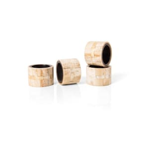 Anel De Guardanapo Copa E Cia 4 Peças Papua Anel de Guardanapo Copa e Cia 4 Peças Papua - Características Gerais do Produto: - Composição: Osso; Madeira; Madre Pérola - Detalhes: Kit Contém 04 peças.; Design Exclusivo Copa&Cia.; As cores podem sofrer pequenas alterações de cor, variando de monitor para monitor.; Os objetos que ambientam as fotos não acompanham o produto.; As fotos produzidas são apenas como sugestão de uso com as demais peças da coleção. - Cuidados: Armazenar em local seco e arejado.; Não podem ser colocados em lava-louças.; Evitar contato com objetos cortantes ou superaquecidos.; Não molhar; Não utilizar solventes, abrasivos ou alvejantes.; Limpar apenas com pano úmido. - Dimensões (cm): Diâmetro: 4 cm Acompanha o produto: - 4 Peças de Anel de Guardanapo Garantia: - 7 dias/30 dias contra defeito de fabricação