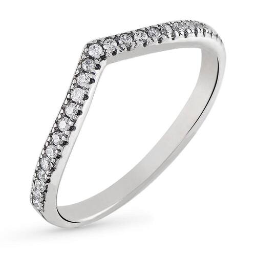 O charme do Anel de Prata Chevron Brilhante da Sal do Mar é para quem busca um anel encantador, com seu detalhe de um pequeno "V" com pedras de Zircônia em sua volta.