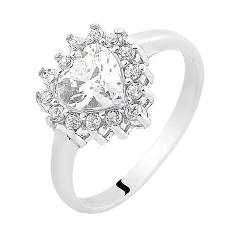 Anel de Prata Coração Zircônia