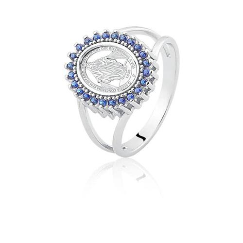 Anel de Prata Oval Nossa Senhora das Graças Safira