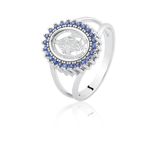 Detalhes: Anel de Prata Oval Nossa Senhora das Graças Safira