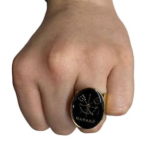 Anel Dourado Ajustável Orixá Exú 2,7 cm em Metal - Selecione