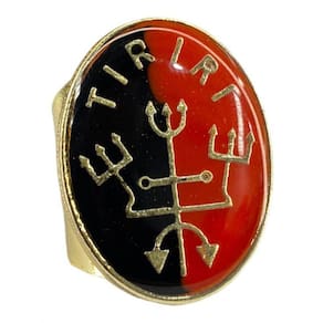 Anel Dourado Ajustável Orixá Exú 2,7 cm em Metal - Selecione - Cor: Exú Tiriri