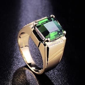 Anel Dourado Banhado Pedra Verde e Zircônias Ajustável Lindo Anel Ajustável. Perfeito para todas as ocasiões, inclusive para presentear, já que não precisa saber exatamente o tamanho pra comprar. Por ser ajustável cabe perfeitamente em qualquer circunferência anelar. Bela peça com pedra lapidada, acessório imponente, com fino acabamento em zircônias cravejadas. Largura de superfície: 12mm Peso líquido: cerca de 7,2g