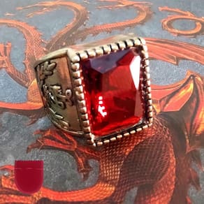 Anel Dourado Envelhecido Pedra Vermelha Casa Dragão