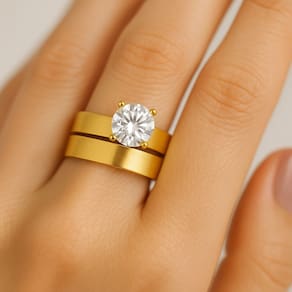 Anel Duplo Solitário e Aparador Dourado em Aço Inoxidável 360L