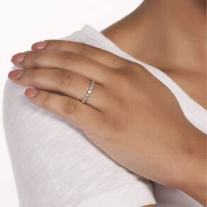 da joia: 3 mm - Latão banhado a ouro branco 18k - Zircônia cúbica transparente - Pedras - de corte redondo - Tamanho 5 - Sem grafite e níquel