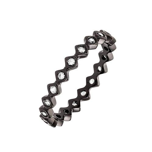 da joia: 3 mm - Latão banhado a ouro preto 18k - Zircônia cúbica transparente - Pedras - de corte redondo - Tamanho 6 - Sem grafite e níquel