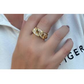Anel Elos Largos e Baguetes Cristais: Este anel é uma verdadeira declaração de elegância e estilo. Apresenta um design ousado e moderno com elos largos cravejados com baguetes de cristais. O contraste entre os elos largos e os cristais cria um visual sofisticado e impactante. Este anel é perfeito para quem busca um acessório versátil e marcante. Seja para uso diário ou para ocasiões especiais, o Anel Elos Largos e Baguetes Cristais certamente atrairá olhares admirados.