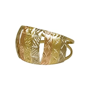 Anel Em Ouro 3 Chapas 3 Cores Abauladas Feminino é todo feito com Ouro 10k 416