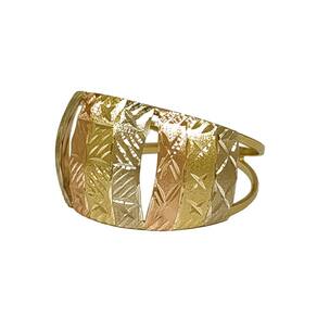 Anel Em Ouro 3 Chapas 3 Cores Abauladas Feminino é todo feito com Ouro 10k 416