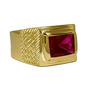 Anel Em Ouro 10k 416 Masculino Pedra Retangular Cores