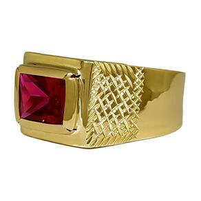 Anel Em Ouro Masculino Pedra Retangular