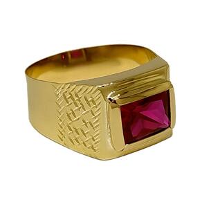 Anel Em Ouro Masculino Pedra Retangular