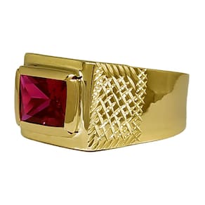 Anel Em Ouro 10k 416 Masculino Pedra Retangular Cores