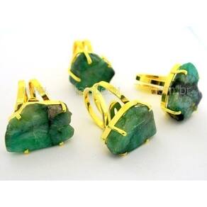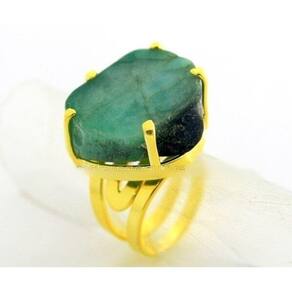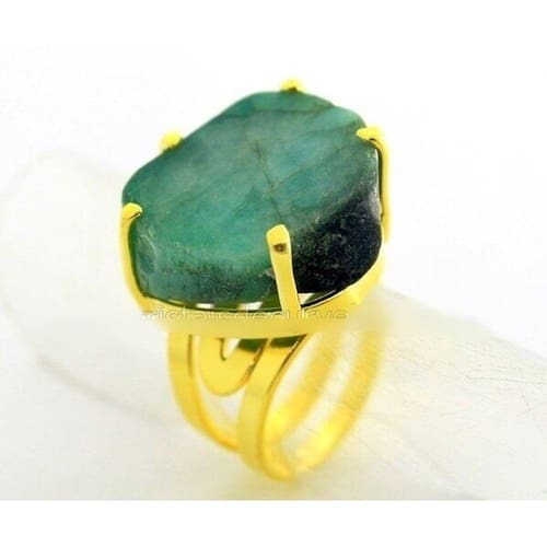 Anel Pedra Esmeralda bruto apenas cortado em Chapa apos polido pra ganhar brilho tipo artesanal a montagem é com aro ajustavel ao dedo reforçado com banho em Flash dourado ouro, Lindo brilho serve do 12 ao 30