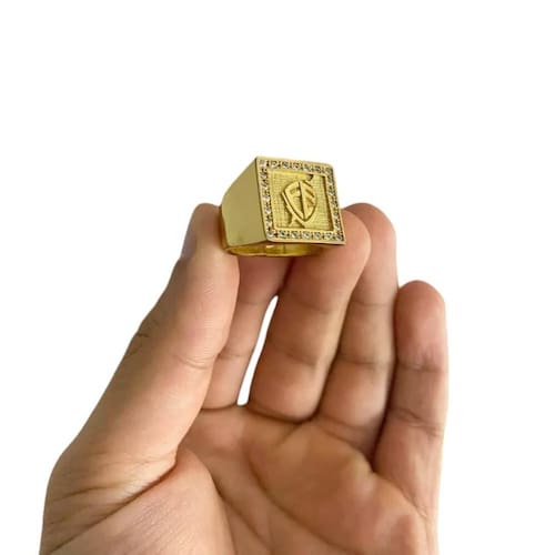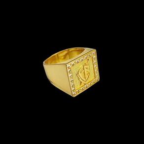 Anel Fé Escudo Cravejado Quadrado - Banhado A Ouro 18K