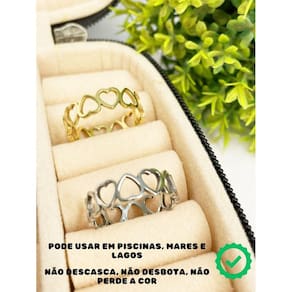Anel feminino corações vazados delicado moderno minimalista prata dourado aço inox tipo falange Cor: prata Tamanho: 13 Anel feminino corações vazados delicado moderno minimalista prata dourado aço inox tipo falange Anel feminino é uma ótima opção para ficar na moda e dar um up no visual. Com material de aço inox, é perfeito para todas as ocasiões. Ideal também para presentear um amiga ou namorada. Anel aço inox, não descasca e não enferruja, podendo usar diariamente. ===================================== Fotos reais do produto na galeria Modelo a prova d'água, podendo usar em piscinas e praias, não descasca, não escurece, não perde a cor Detalhes técnicos: Marca: visujóias Modelo: anel delicado Espessura anel: 5mm Incluso: 1 unidade anel Material: aço inoxidável. Código do produto sku : 3521 : 6 meses. Todas as peças possuem tratamento antialérgico. =============================================================================== P:minha compra é segura R:toda compra que é feita aqui está em ambiente seguro, isso significa que se caso ocorra algum imprevisto faremos o estorno de seu pagamento. R: sim. P: produto é a prova d'água R: sim, pode usar em piscinas e praias que não escurece. P: tem R: sim, todos os nossos produtos tem de 6 meses, contra defeitos de fabricação. Todas as informações de cuidados são enviados junto com o produto. P: posta em quanto tempo P: posso trocar se não servir R: sim, enviamos nosso contato junto com o produto para orientação sobre troca. P: posso devolver se não gostar R: sim, caso não goste do produto é só entrar em contato conosco que iremos orientá-lo como efetuar a devolução. Dúvidas Pergunte à vontade, estamos aqui. ficaremos felizes em responder rapidamente. Aguardamos sua compra e estamos ao seu dispor : Marca: Não Informado Ean: 7732647223315