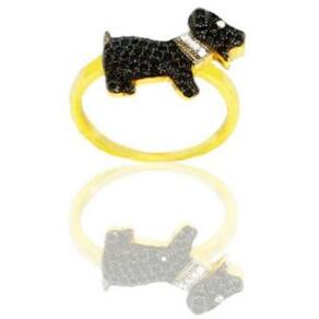 Anel folheado a ouro 18K com o desenho de um cachorrinho cravejado com zircônias negras. Um acessório desenvolvido para representar todo o amor para os cachorros, afinal de contas, qual é a melhor forma de homenagear nosso cãozinho de estimação. com uma bela jóia. Ideal para mulheres amantes dos animais. Com o toque especial das zircônias negras, combina com qualquer look do dia a dia. Dados Técnicos: Marca: Visujóias Número do anel: 20 Modelo: Anel dog Pedra: Zircônia Cor da Pedra: Negras pretas Peso: 3 Gramas. Folheação: Ouro 18K. Código do produto SKU : 2000000009858 : A tem prazo de 06 seis meses para banho e de 01 um ano a partir da data do certificado de para defeitos de fabricação, mediante apresentação do produto acompanhado do respectivo certificado de . Marca: Não Informado