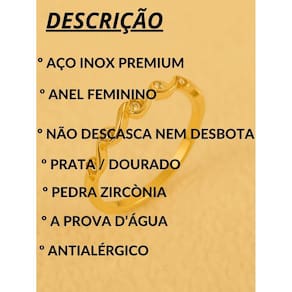 Anel feminino ondinhas fino cravejado zircônia delicado minimalista prata dourado aço inox falange Cor: dourado Tamanho: 13 Anel feminino ondinhas fino cravejado zircônia delicado minimalista prata dourado aço inox falange Anel feminino é uma ótima opção para ficar na moda e dar um up no visual. Com material de aço inox, é perfeito para todas as ocasiões. Ideal também para presentear um amiga ou namorada. Anel aço inox, não descasca e não enferruja, podendo usar diariamente. ===================================== Fotos reais do produto na galeria Modelo a prova d'água, podendo usar em piscinas e praias, não descasca, não escurece, não perde a cor Detalhes técnicos: Marca: visujóias Modelo: anel delicado Espessura anel: 1mm Incluso: 1 unidade anel Material: aço inoxidável. Código do produto sku : 3524 : 6 meses. Todas as peças possuem tratamento antialérgico. =============================================================================== P:minha compra é segura R:toda compra que é feita aqui está em ambiente seguro, isso significa que se caso ocorra algum imprevisto faremos o estorno de seu pagamento. R: sim. P: produto é a prova d'água R: sim, pode usar em piscinas e praias que não escurece. P: tem R: sim, todos os nossos produtos tem de 6 meses, contra defeitos de fabricação. Todas as informações de cuidados são enviados junto com o produto. P: posta em quanto tempo P: posso trocar se não servir R: sim, enviamos nosso contato junto com o produto para orientação sobre troca. P: posso devolver se não gostar R: sim, caso não goste do produto é só entrar em contato conosco que iremos orientá-lo como efetuar a devolução. Dúvidas Pergunte à vontade, estamos aqui. ficaremos felizes em responder rapidamente. Aguardamos sua compra e estamos ao seu dispor : Marca: Não Informado