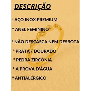 Anel feminino ondinhas fino cravejado zircônia delicado minimalista prata dourado aço inox falange Cor: dourado Tamanho: 13 Anel feminino ondinhas fino cravejado zircônia delicado minimalista prata dourado aço inox falange Anel feminino é uma ótima opção para ficar na moda e dar um up no visual. Com material de aço inox, é perfeito para todas as ocasiões. Ideal também para presentear um amiga ou namorada. Anel aço inox, não descasca e não enferruja, podendo usar diariamente. ===================================== Fotos reais do produto na galeria Modelo a prova d'água, podendo usar em piscinas e praias, não descasca, não escurece, não perde a cor Detalhes técnicos: Marca: visujóias Modelo: anel delicado Espessura anel: 1mm Incluso: 1 unidade anel Material: aço inoxidável. Código do produto sku : 3524 : 6 meses. Todas as peças possuem tratamento antialérgico. =============================================================================== P:minha compra é segura R:toda compra que é feita aqui está em ambiente seguro, isso significa que se caso ocorra algum imprevisto faremos o estorno de seu pagamento. R: sim. P: produto é a prova d'água R: sim, pode usar em piscinas e praias que não escurece. P: tem R: sim, todos os nossos produtos tem de 6 meses, contra defeitos de fabricação. Todas as informações de cuidados são enviados junto com o produto. P: posta em quanto tempo P: posso trocar se não servir R: sim, enviamos nosso contato junto com o produto para orientação sobre troca. P: posso devolver se não gostar R: sim, caso não goste do produto é só entrar em contato conosco que iremos orientá-lo como efetuar a devolução. Dúvidas Pergunte à vontade, estamos aqui. ficaremos felizes em responder rapidamente. Aguardamos sua compra e estamos ao seu dispor : Marca: Não Informado Ean: 7732647223353