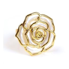 ANEL FLOR PORTA GUARDANAPOIdeal para decorar e auxiliar na organização de guardanapos dispostos à mesa, além de adicionar um toque elegante e charmoso na decoração de suas festas.Preço por unidade.Medidas: Comprimento total: 5cm x Diâmetro interno: 9cm x Circunferência: 12cmCUIDADOS:- Limpar manualmente- Não molhar o produto.- Não colocar na lava-louças.- Armazenar em local seco e arejado.