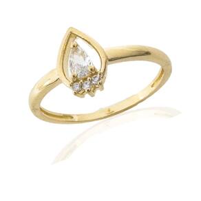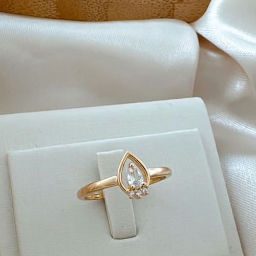 Anel Gota Cristal e Três Pontos de de Luz Banhado a Ouro