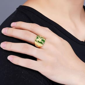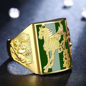 Anel Grande Masculino Horse Cavalo Banhado a Ouro Ajustável Verde