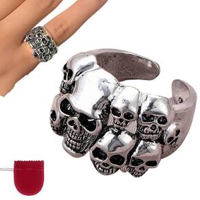 Anel Grande Prateado Cabeças Caveiras Regulável Anel Prateado Ajustável você pode apertar ou alargar, caso seja necessário Perfeito para todas as ocasiões, inclusive para presentear, já que não precisa saber exatamente o tamanho pra comprar. Por ser ajustável cabe perfeitamente em qualquer circunferência anelar. Bela peça com ótimo acabamento.