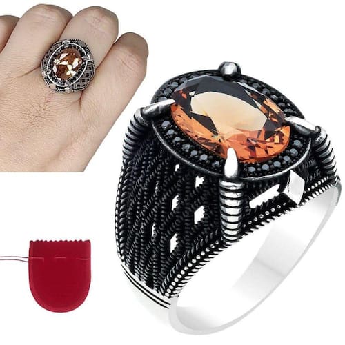Anel Grande Prateado Garras e Olhos de Dragão Citrino Regulável Anel Prateado Ajustável você pode apertar ou alargar, caso seja necessário Perfeito para todas as ocasiões, inclusive para presentear, já que não precisa saber exatamente o tamanho pra comprar.Por ser ajustável cabe perfeitamente em qualquer circunferência anelar.Bela peça com ótimo acabamento.Largura de superfície: 19mm Peso líquido: cerca de 6g Acompanha saquinho de veludo. Marca: Pjk store