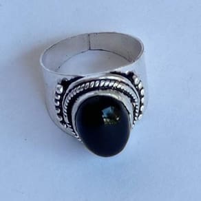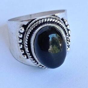 Metal Alpaca Indiano e Pedra Natural Obsiana