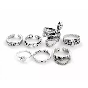 Descrição: - anéis luxuosos; - fashion e sempre na moda; - kit com 7 anéis; - formatos diferentes e luxuosos.